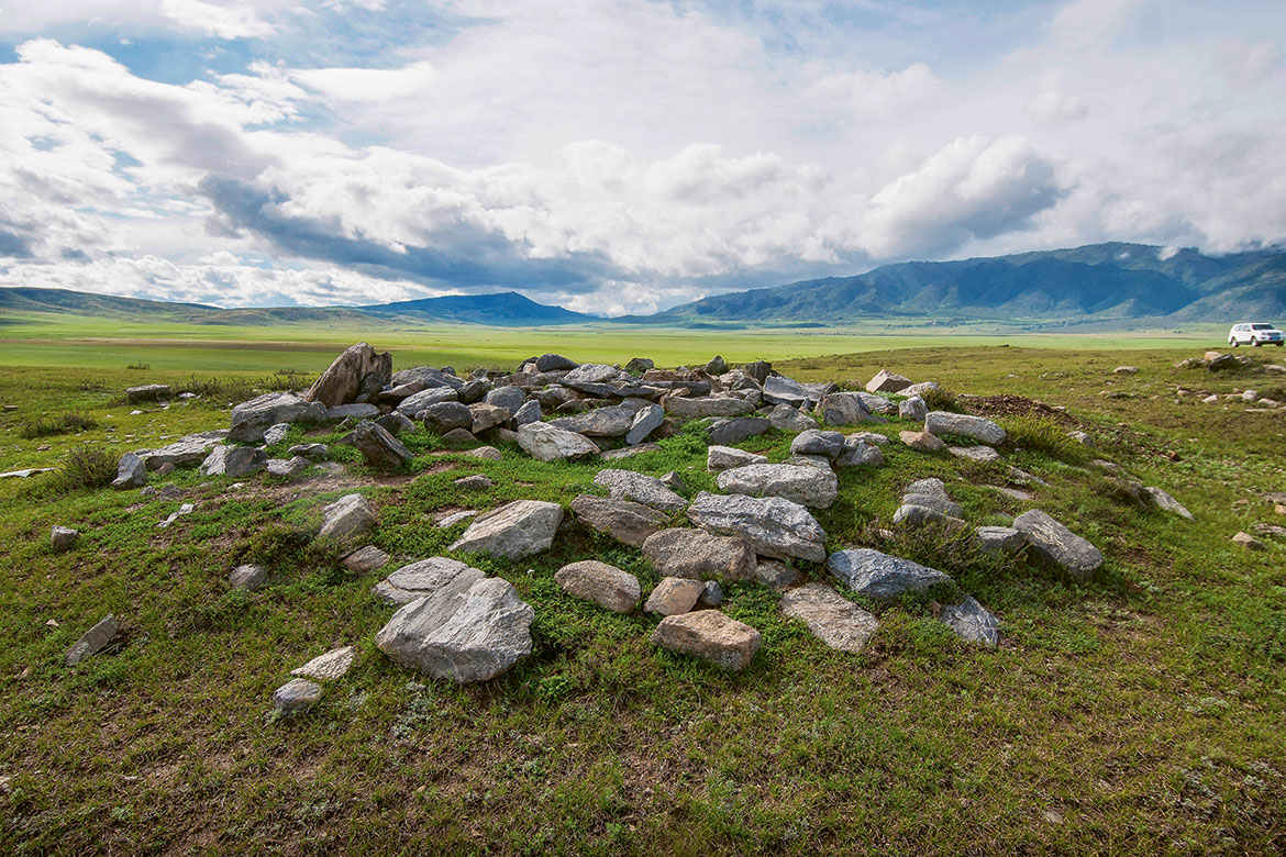 Dieses Grab in der Steppe des Altai-Gebirges kann mit Satelliten geortet werden.