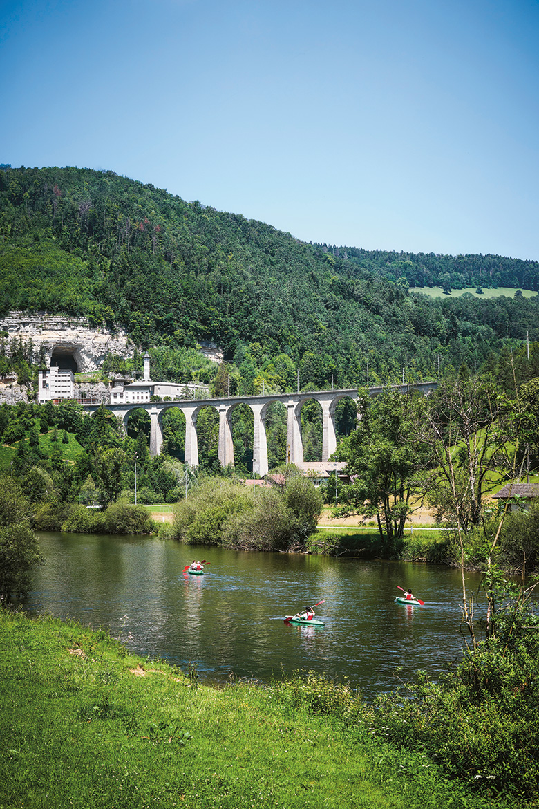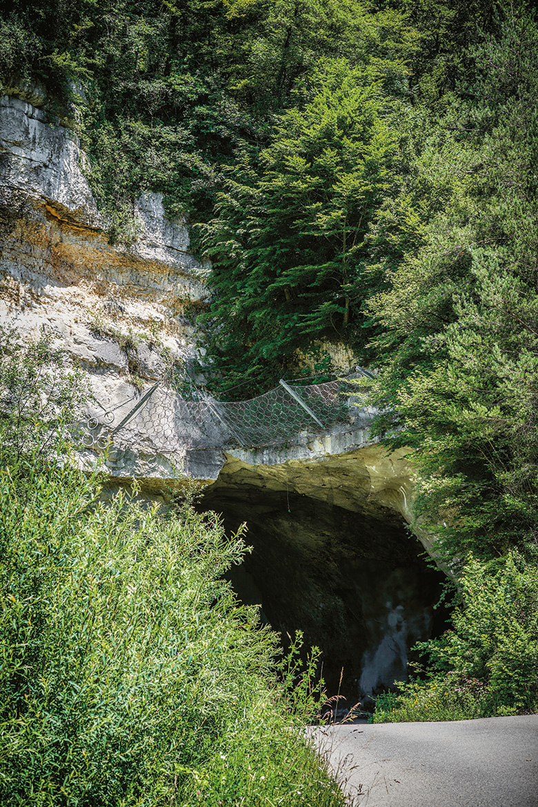 Hoch über dem beschaulichen jurassischen Städtchen St-Ursanne am Doubs klafft ein Loch im Felsen. Es ist – neben dem alten Fabrikgebäude – das letzte sichtbare Zeichen der Kalkfabrik, die hier bis 1993 in Betrieb war. Eine steile Strasse führt zur Tunneleinfahrt ins Felslabor. Rund zweihundert Meter nach der Zufahrt ist vorerst Schluss: Ein Schiebetor öffnet sich, das Auto fährt in eine Schleuse, das Tor schliesst sich. Nun ist man eingesperrt in Tonnen von Felsgestein.
