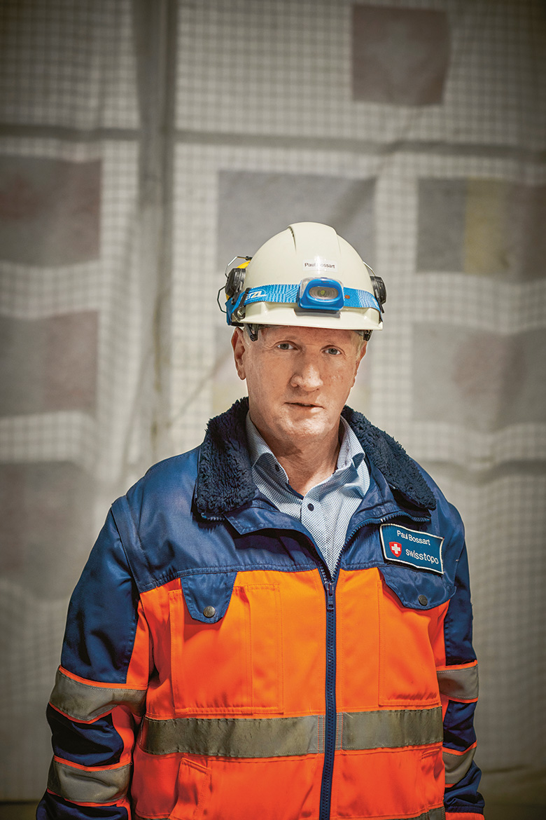 «Im Tunnelinneren herrscht ein Überdruck, damit sich bei einem Brand der Rauch nicht so ausbreiten kann», erklärt Paul Bossart, Direktor des Felslabors Mont Terri. Kurz darauf öffnet sich das zweite Schleusentor auf einen schnurgeraden, vier Kilometer langen Tunnel. Es handelt sich hier nicht nur um die Zufahrt zum Labor, sondern auch um den Fluchttunnel für die A16, die parallel dazu verläuft. Bei einem Unfall im Autobahntunnel werden die Menschen über diesen Stollen evakuiert. Dann müssen auch die Mitarbeitenden des Forschungslabors raus.