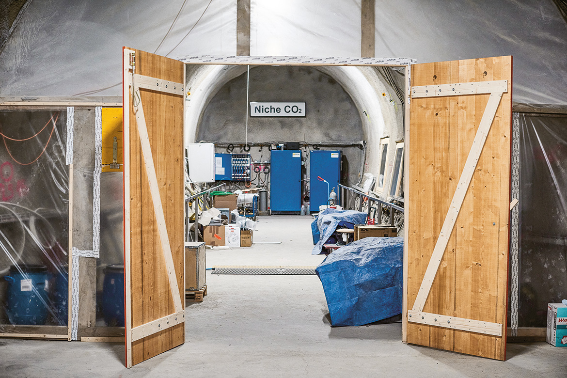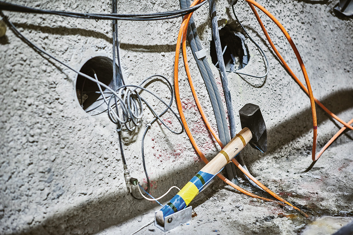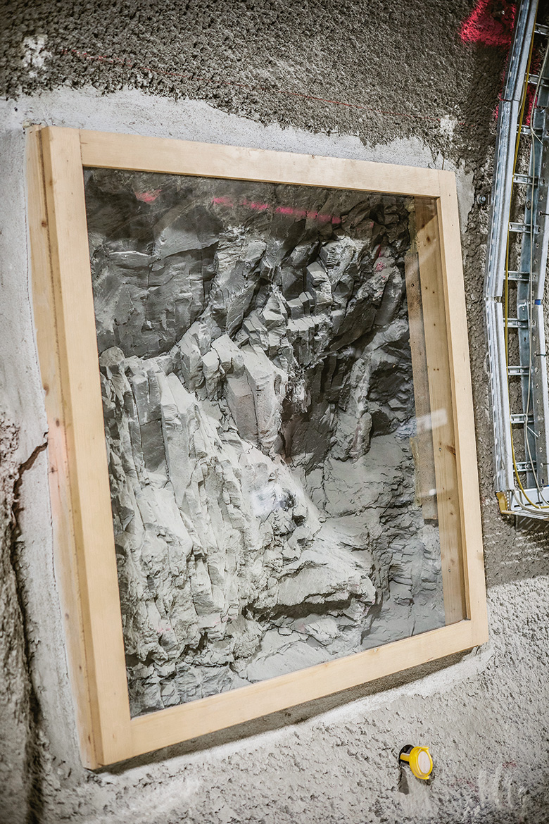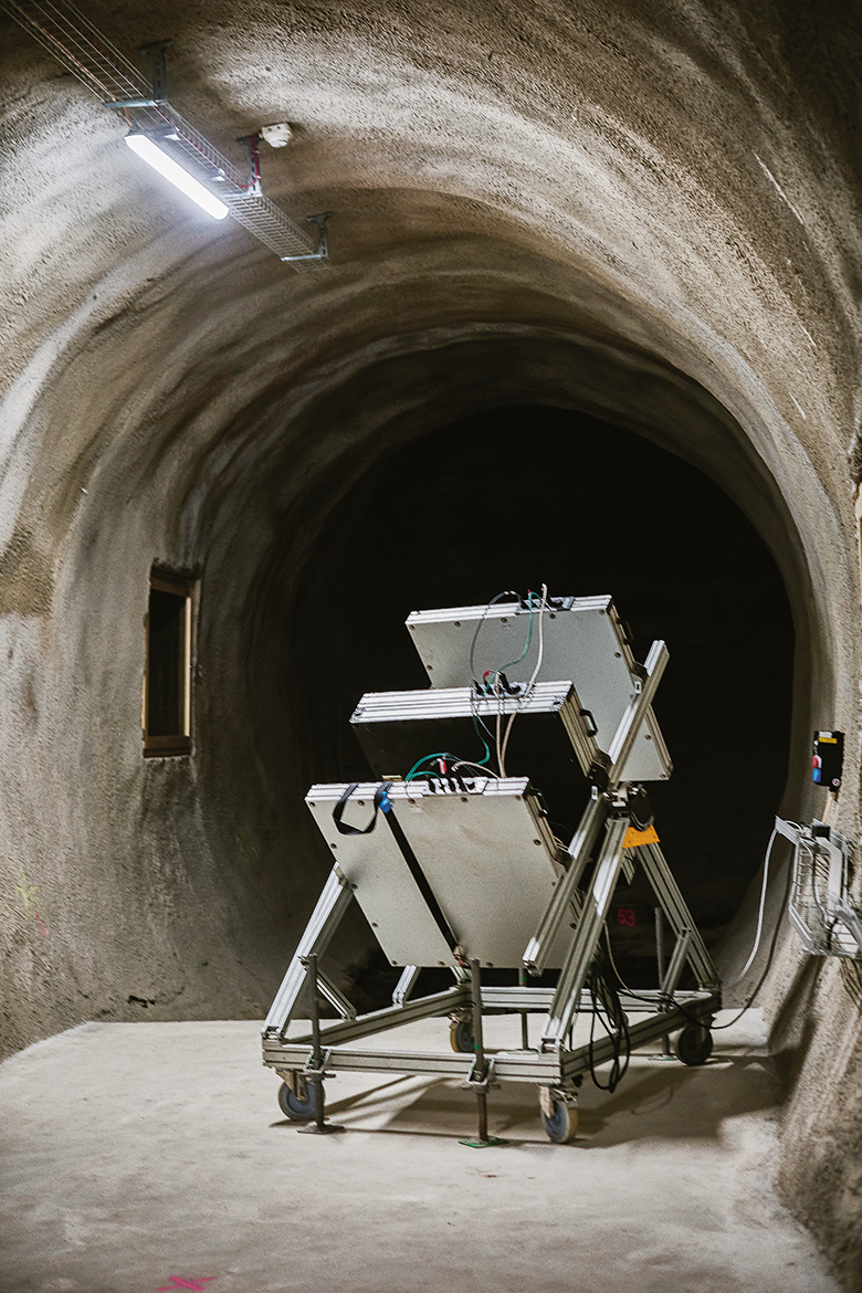 Jetzt geht es weiter in den Fels. «Ganz am Anfang ist mal die Beleuchtung ausgefallen, und ich habe meine Lampe verloren. Wir mussten uns mit einem Feuerzeug aushelfen», erzählt Bossart. «Da habe ich gemerkt, wie schnell man die Orientierung verliert.» Einmal jährlich findet eine Notfallübung inklusive Blaulichtorganisationen statt. Wer im Stollen unterwegs ist, trägt einen Badge, der von den Rettungsorganisationen genau lokalisiert werden kann. Wichtig ist es auch, die Experimente mit den wertvollen Instrumenten zu schützen. Deshalb sind in regelmässigen Abständen Feuervorhänge installiert, damit man die betroffenen Abschnitte isolieren kann. «Feuer ist ein hohes Risiko. Aber bis jetzt hatten wir glücklicherweise noch keinen ernsten Zwischenfall», sagt Bossart.