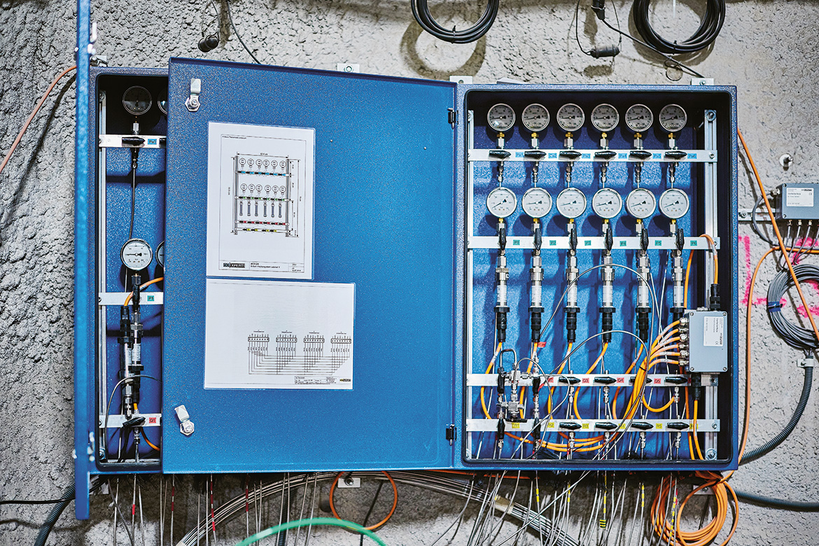 Zu Fuss und ausgerüstet mit Helm und Lampe geht es weiter: 1200 Meter Stollen und Nischen wurden hier in den Fels gebohrt, die ersten Meter 1996, die letzte und grösste Galerie wurde Ende 2019 fertiggestellt. Weltweit gibt es rund 30 Felslabore, davon 4 in Tongestein wie im Kanton Jura. Doch nur das Schweizer Labor ist komplett der Forschung verschrieben. Für den Betrieb verantwortlich ist das Bundesamt für Landestopografie Swisstopo. 22 Organisationen aus 9 Ländern sind daran beteiligt, darunter das Eidgenössische Nuklearsicherheitsinspektorat (Ensi) und die Nationale Genossenschaft für die Lagerung radioaktiver Abfälle (Nagra) sowie deren europäische Pendants, aber auch geologische Landesdienste, Hochschulen und Erdölfirmen.