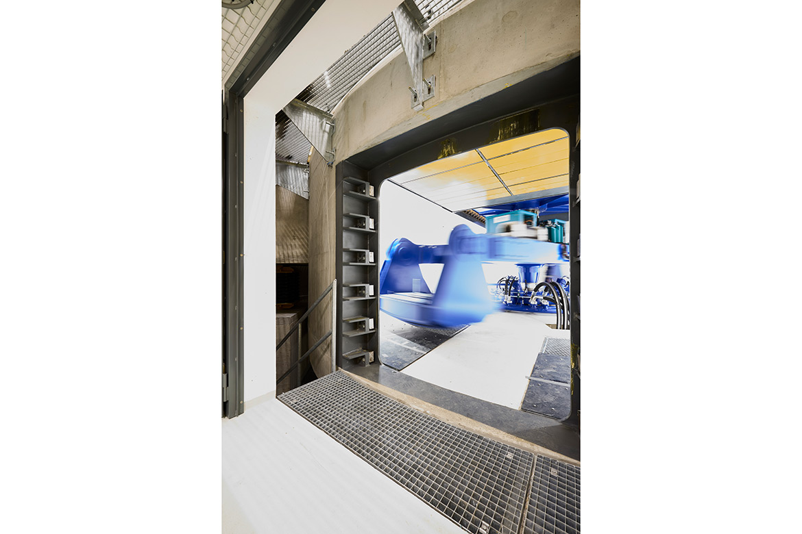 Elegant, futuristisch und leuchtend blau schwebt das «blaue Biest» fast schwerelos im Raum. Eingefasst von einem fast 250 Tonnen schweren Betongehäuse, wartet es auf die ersten Experimente. Hier – ein paar Meter unter der Erde am ETH-Campus Hönggerberg oberhalb von Zürich – ist die leistungsstärkste Forschungszentrifuge Europas endlich startklar. Nach sieben Jahren Organisieren, Bauen, Restaurieren und Testen. Die tonnenschwere gelbe Stahltür liefert den farblichen Kontrast.